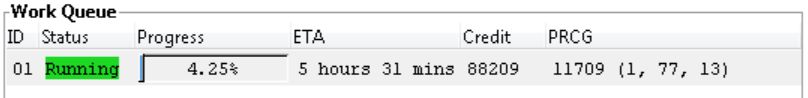 Progress -> A progress bar indicating how far the WU has been folded, displayed to the nearest 0.01%.